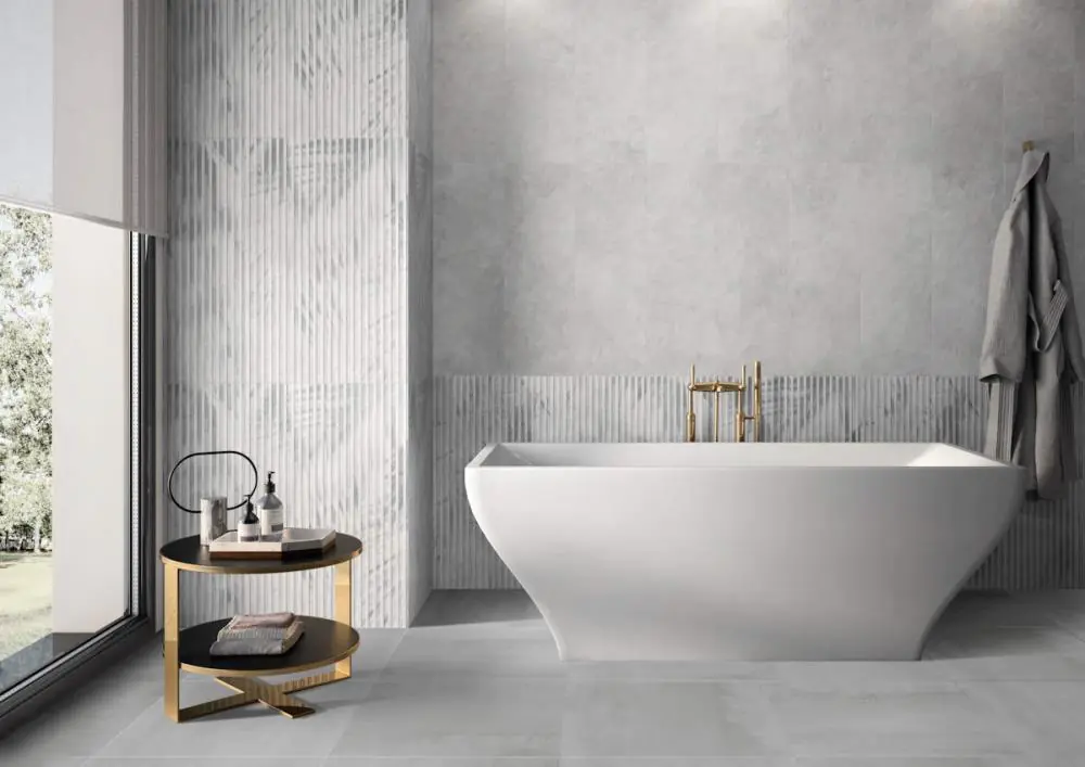 Metall und Beton werden in der aktuellen Innenarchitektur gerne eingesetzt, um extravagante, puristische Raumatmosphären zu erzeugen. Die Serie METALYN adaptiert die beiden typischen Materialanmutungen für eine neuartige Optik in Keramik: Mit einem edlen Oberflächenfinish und einem exklusiven Dekorkonzept interpretiert das Design eine Symbiose aus urbanem Beton und bearbeitetem Metall in vilbostone Feinsteinzeug.