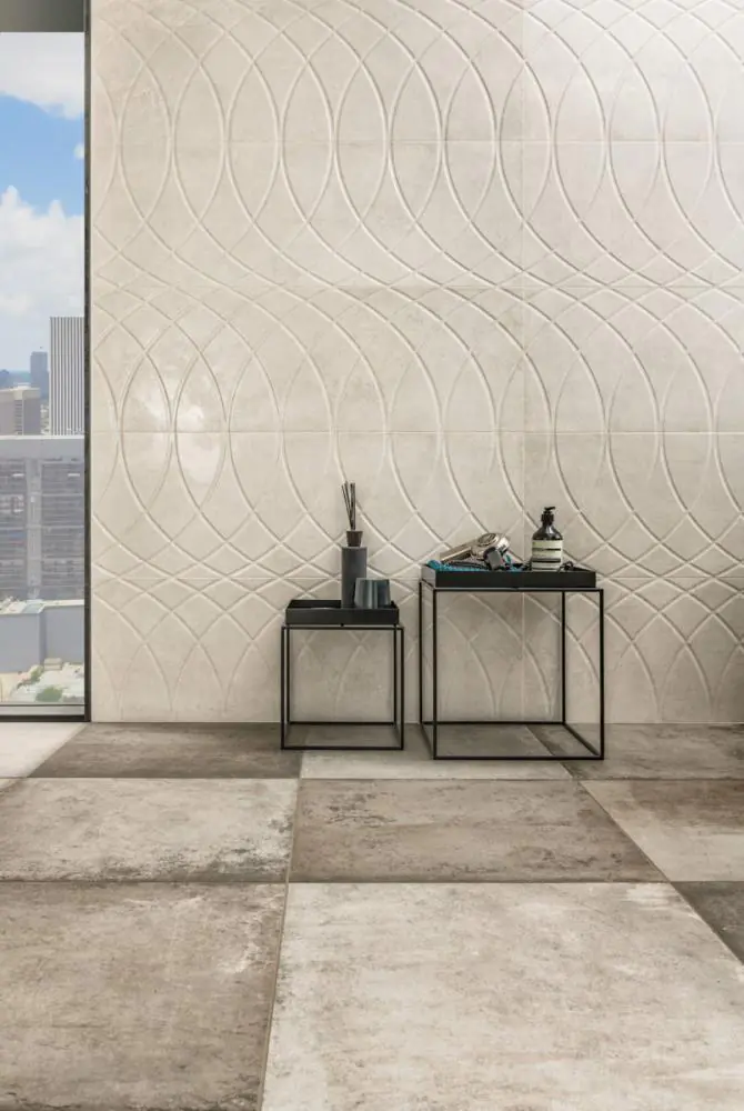 Wenn Arbeiter in schweren Schuhen tagein tagaus Baumaterial über rustikale Baustellenbohlen tragen und Maschinen darüber schieben, hinterlassen sie deutlich sichtbare Spuren. Diesen Look greift die concept³-Serie WORKSHOP auf und interpretiert das Thema Beton eigenständig und extravagant im Sinne des angesagten Industrial Style für Wand und Boden. Die Bodenfliesen aus vilbostone Feinsteinzeug reizen dabei das Spiel mit Kontrasten in einer einzigen Farbe effektvoll aus – von warmer Rostoptik über stahlgraue und anthrazitfarbene Betontöne bis hin zu cremigen und braunen Elementen. Wunderschön sanft dazu: Helle Wandfliesen aus Steingut, die, angelehnt an das Bodendesign ganz leichte Gebrauchsspuren zeigen. Highlight an der Wand ist eine Reliefdekoration, deren Anmutung überrascht: Das klassisch-geometrische Dessin bildet aus sanft geschwungenen Linien fortlaufende Ellipsen, die als Band und in der Fläche eine attraktive Ästhetik entfalten. WORKSHOP ermöglicht ausdrucksvolle Wand- und Bodengestaltungen im ganzen Haus: Großzügigen Küchen, Bädern, Wohn-, Esszimmern und Fluren verleihen die Fliesen einen individuellen, designstarken Look – im renovierten Altbau, im modernen Neubau oder im offenen Loft. Und auch im hochwertigen Objektbereich sind Anwendungen denkbar, beispielsweise in Hotellobbys, Boutiquen oder Fitnessräumen.